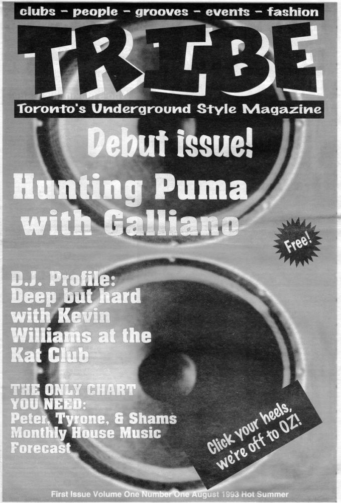 Tribe not only represented DJ culture, but also clubs, fashion and record stores. “I bootstrapped the whole operation and self-published it. I would include an Ad rate sheet in every issue,  hang out at all the after club parties and talk to the key promoters (there weren’t many then – maybe 4!). Starsound was the first store to carry Tribe. Most Djs congregated there so it was the obvious first choice. Then, I would call the other stores, using different phones and names pretending to be a keen customer asking if I could get Tribe magazine there. Then a few days later I’d walk into these stores with Tribe – as me –  and they’d say ‘Thank God you’re here! We’ve been getting all sorts of phone calls about this magazine’.” Ha ha. The perfect marketing strategy.  Eventually Tribe would be distributed in quite a few stores/venues around Toronto, gaining a huge fan base and writers nationwide who volunteered their columns and helped distribute the magazine. By 2004, Tribe had a circulation of 100,000 readers a month.  Tribe’s last issue was printed in 2003: 10 years, 105 issues. The online version is still alive and well. It contains over 4 million message posts, making it one of the largest message boards on the Internet today, covering a wide variety of topics including new music, technology, nightlife, culture, sports, men’s, women’s issues, and politics.  The DJ Mixes area contains the most extensive collection of links to mixes by Canadian DJs in Canada.