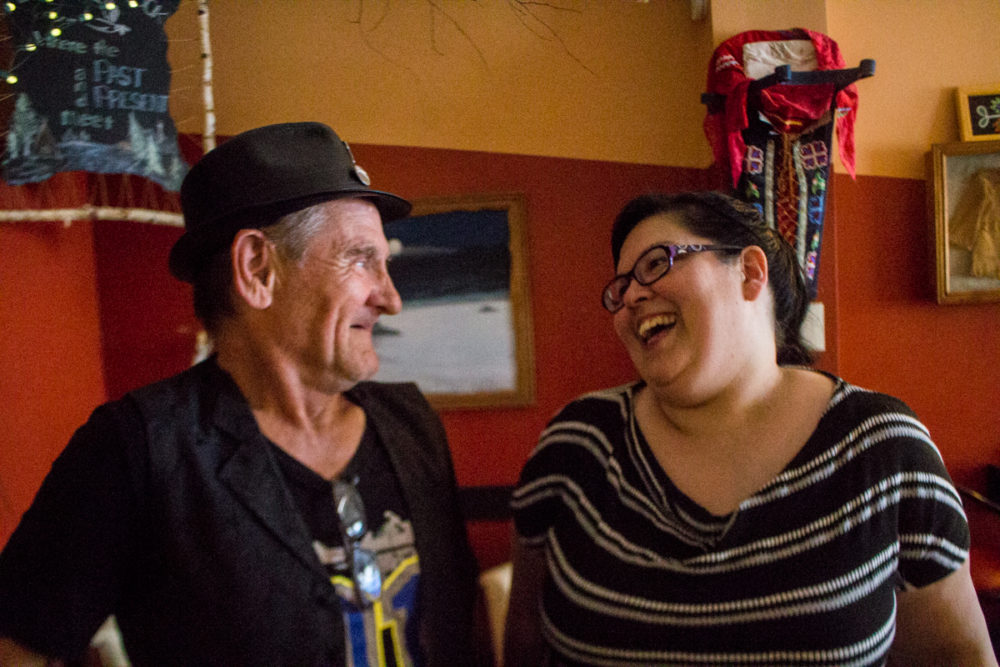 Bear suffers from MPD (Multiple Personality Disorder). There are five: Barry: his real self, who he says died at 14, Care Bear: who we meet on the street, Badger: mouthy, talk-tough guy, Big Bear: The Vietnam killer ie; the violent one and MainTain: who keeps everyone under control. My eyes grew big at this news. I ask if he sought help/a therapist after all he’d been through, including finding his twin sister, Tina, dead from an overdose. “Yep. At first they put me on 20+ meds. You name it – diazepam, lorazepam, prozac, lithium, etc. After a few years, I told the doctors I’m done. I was a vegetable. I need my mind! I need to think! Once a year I see a panel of psychiatrists at CAMH and they do an assessment.” He’s been off the drugs for 12 years now and maintains ‘MainTain’ keeps everything and everyone in order. “I’m in my 60s and I’m as tough and strong as I was when I was 25. Maybe more so. Whatever doesn’t kill you makes you stronger, right?” If anyone knows that proverb to be true, it’s Bear. Before I could leave he takes me over to meet Tina at Tea ‘N Bannock, then Mom & Pops and Kerry from SkyBlue Studio. On our short journey, he’s said ‘hello’ to at least 4 people and a dog he knows. While I left with a heavy heart after our time together, the one thing I learned is that it’s the simple joys that keep him going. He loves the kids who pass him by every day and anyone who offers a smile and a kind word. If you’re passing his chair one day, shout out a ‘hello’ or give him a smile. You’ll be sure to make a quick friend.