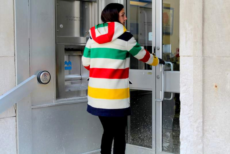 November 12, 2015 In A Day in the Life of Leslieville Day 304: O Canada…O wait….O yeah, Hudson’s Bay is American owned now….O no… The CurzonLonely Mitten, Woodfield Rd. Broadview & Queen