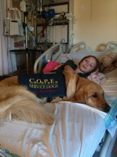 Much of Stephanie’s improvement started when they got Flare, their COPE service dog, seven years ago. She helps distract and comfort Stephanie when in pain, helps her physically move around/upstairs when she needs, & even helps her take her socks off! And she’s pretty adorable to boot. The other mainstays that have helped Stephanie get to where she is now, are Boston Children’s Hospital, (Hope Air flew them there), where she did a 5 week intensive programme, the Clayton’s neighbours and friends and most importantly, her family. You can imagine raising 2 other children as well as Stephanie requires a ton of support. Denise praises husband and Stephanie’s dad, Greg, for being there 1000% and of course Sydney and Danielle, who lived a lot of their life without their sister at home. They’ve made up for lost time by starting a Facebook page called ‘3 Cute Girls’, which raises awareness and funds to help Stephanie win her fight with intestinal failure and chronic pain, giving back to the charities that have helped her. Proceeds from the sale of their handmade angel necklaces and star decorations are given to either Make-A-Wish, Emily’s House, Starlight, Young Carers or Cope Service Dogs. This year it was Emily’s House.