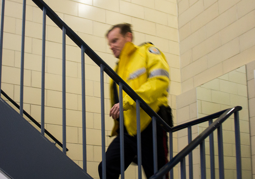Jon grew up in the Beach so he laughs a bit when we talk about criticism and respect.  ‘It’s hard for me sometimes because I live in the Beach now and see people I grew up with and their parents who find it hard to see me as a law enforcer, as well as having to ‘reprimand’ young teenagers who are doing things I did in my own youth’.  When I ask him if he’s ever scared going to work he says, ‘No, but I’m cautious; especially on a bike.  On the upside, we talk and hang out with many homeless or regular residents who prefer to take to the streets than be anywhere else.  They can be very helpful and have oftentimes given us tips, tell us they saw something etc.  We’ve also tried to offer them shelter, food, water etc.  Many will take the drinks, but rarely if ever the shelter’.  One person he talks about fondly is Mikey Moquin who recently passed away.  Jon remembers Mikey as a great guy who was a Leslieville resident for many years.  ‘We talked with him a lot’.  Another is Rocky (who many of you may know) who had Boss, the dog. ‘Rocky is pretty harmless.  He can be very helpful to us so we keep our relationship with him a good one.  It’s really the perfect job for me.  I love meeting people, engaging with community residents, love to get people out of their houses and on the streets and engaged.  That’s why I’m so fond of people with dogs.  They are out when most are at home/work/in bed, and become a kind of neighbourhood watch’.  He gets misty eyed talking about dogs.  He hasn’t gotten another one since his Golden Retriever Billie passed away about 12 years ago at the age of 16.  ‘I just can’t bring myself to go through that again’.  I can relate to losing a beloved pet but reassure him the best thing to do is get another one in need.  He agrees. ‘Yeah, you’re right’, but I have a feeling Billie will be taking up the lion’s share of his heart for a while longer.  On that note, he quickly changes the mood and topic. ‘Time to get back on the beat!’ He gives me a quick tour of 55, stops for a few jokes with fellow officers and gets his bike road-ready.  If you haven’t met/seen Jon or recognized him riding past you, you will now. Stop him on the street and say ‘Hi’. I know he’d love that.