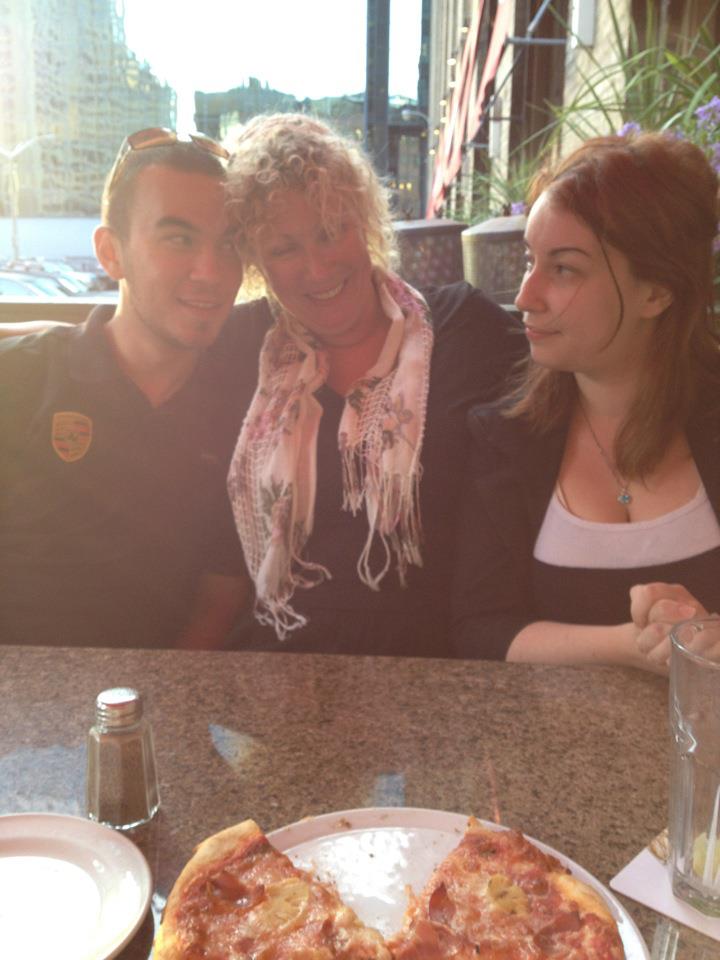 The same year she left Jim, she met Paul, another comic. They moved to a small apartment on Broadview and not long after, the kids returned from BC. With the four of them in a tiny apartment it was time for bigger digs. In 2002, they bought a house on Donlands and thus began her family life again. She quit stand up comedy and worked more hours at Joe Badali’s to support the kids.