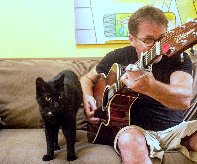 Matthew’s other love, songwriting and music, started later in life. ‘I love words and I wanted to write songs, so when I was 24 I bought a guitar, learned to play & started writing. I’ve written a couple hundred songs; rock, blues, folk and some instrumental stuff as well. I’ve made videos for a number of them. It’s not that different than visual art; in both cases, it’s about relationships, balance and composition to express ideas. In art, the relationships are between colour and shape; with music it’s between sounds and words’.