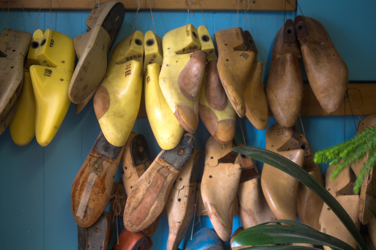 Meet Nasser. He’s internationally renowned, but he’s tucked away off Queen St., thriving in the lost art of bespoke (custom made) shoemaking. I’d always wondered what that little place was when I was doing my morning photo walks through Leslieville last year. Entering the shop, I was transported to ‘old times’ and my memory of Geppetto’s workshop in the old Disney classic, Pinocchio. Instead of wood, there was leather and tools, knives, nails, buttons, hooks, old sewing machines, soles and molds and everything amazing you could imagine in a craftsman’s workshop.