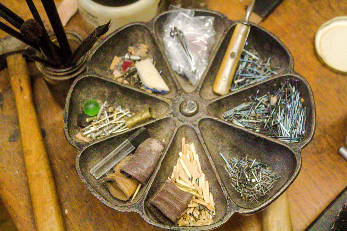 Nasser has been living and working in Riverside for 23 years now. Iranian born, he left before the Iran/Iraq war began in 1980 on an acceptance to York University to study Engineering. Once there, the artist in him felt the pull towards the Liberal Arts programmes, trumping Engineering in the end. Living in the Annex at the time, Nasser met a slew of interesting people, one in particular who was a collector of shoemaking tools. He had influenced Nasser and a friend to study the craft. They left university and began their journey towards master shoemaking – from scratch. While Nasser’s experience was full and he learned a lot, he wasn’t ready to set out on his own and left Toronto in 1981 for Dundas Ontario, to work as an apprentice under ‘Old Tony’, an 87 year old master. There, he acquired all the skills: knife sharpening, thread making (old Irish linen which was waxed and twisted into single strands), bottoming and every detail about how to make a shoe from scratch. After several years under Tony, Nasser moved back to Toronto and opened a small shop in the Annex, but after two years, the owner sold and he moved to his current location.