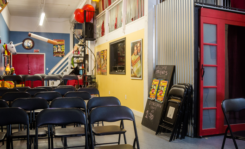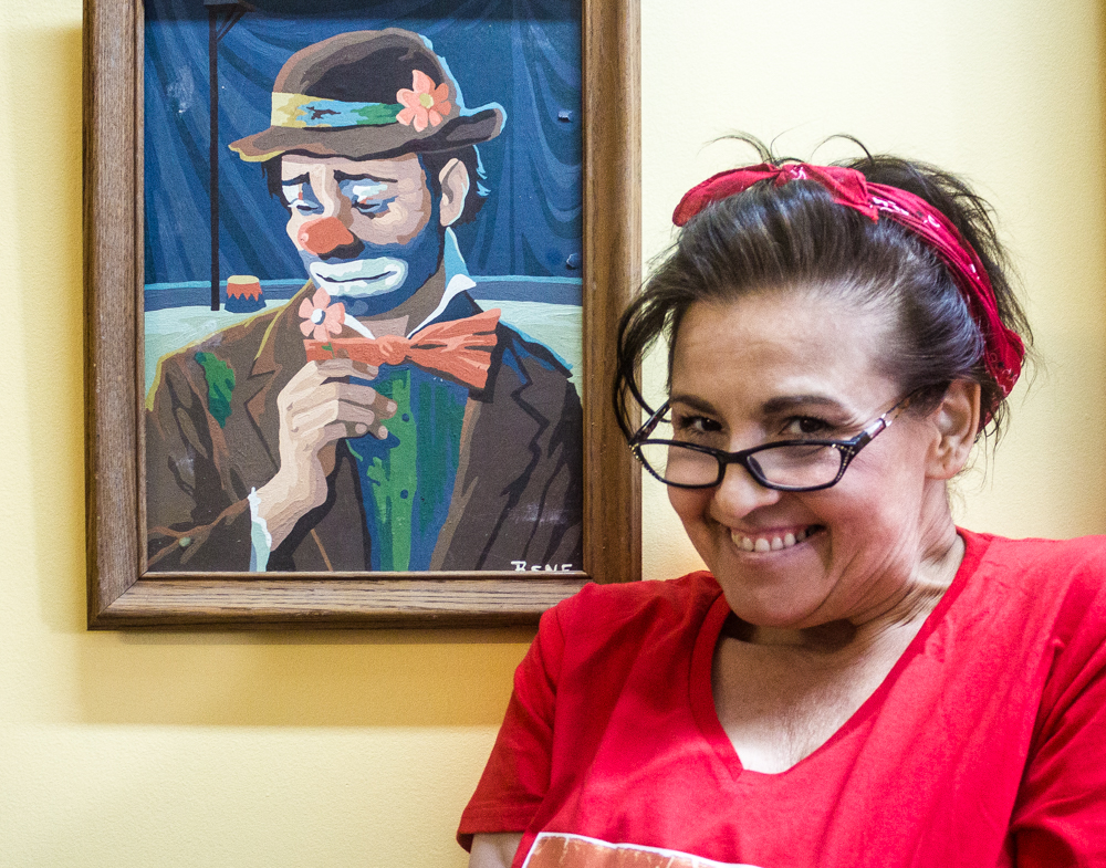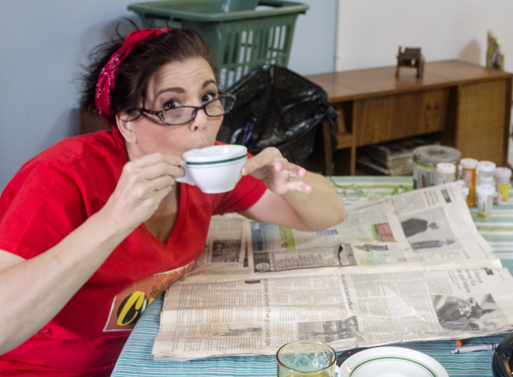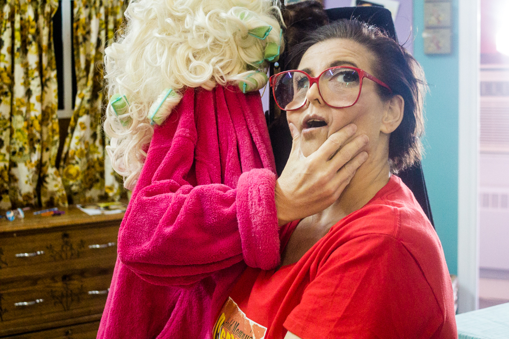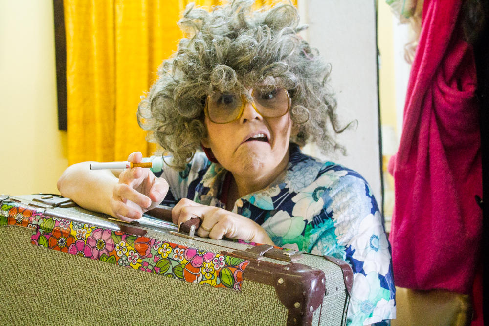 At 19, she met her husband Jason and less than a year later they had their daughter Chelsey, followed by their son, Cody, a few years later. When the kids were newborns, they moved back to the country into her mother’s old house, which was next to her bossy and controlling grandmother. ‘Why did you move back?’ ‘It was cheap, we had 2 kids and not much choice then’. When the kids were 7 & 9, they moved and bought their own farmhouse back near Dunnville which, ironically, was on the same RR road as her step-father. That brought back fearful memories, eventually landing Shelley in a psychologist’s office. Uncovering childhood wounds can lead to self-destruction and at age 37, Shelley attempted suicide. As bizarre as this sounds, her retelling of it had me in stitches. She has the gift of tragicomedy. In her depressed state she had put on weight, bought the cord to do the deed from the Dollar Store, and when she got up on the chair to say ‘goodbye world’, the chair, which couldn’t withstand her weight and the cheap cord, which was around her neck, broke. ‘2-bite brownies saved my life’. She laughs. We both laugh. At this point I ask how Jason, her husband, is handling all this. She smiles. ‘Not well then, but he stayed because I try. He and his family are a godsend. I’d never have survived if there weren’t angels dropping in’. After Shelley’s suicide attempt, she checked into a facility nearby for the mandatory 28 days. She saw a psychologist for approx 7 minutes a day but the one good thing that came from it all was that she was encouraged to tap into her creativity and get into the arts somehow. She scoured the local paper, all 4 pages of it, and saw a tiny ad on the back page for an improv class. The rest is history. ‘I killed it’, she laughs and fist pumps the air. Shortly after, she joined Second City taking the GO train in from Hamilton every week for 18 months. ‘I never got my grade 12, but I got my Second City,’ she grins. Not long after, NOW magazine wrote an article on her titled, ‘Best New Discovery’ in the Comedy section and the offers started coming. In 2008, Shelley’s daughter was renting a house in Leslieville, which she and Jason eventually bought, renovated into apartments and lived in, until she started her overseas stand up tour. Starting in the UK, they went to nine countries in eight months. On her return, she signed with an agent and did corporate stand up and wrote her first show, Full Bawdy Comedy Show, which included burlesque, singers, sketch and stand-up. Too risque for corporate gigs, she dropped the agents and started producing her own work with Jason and their son, Cody. She did scores of workshops including clowning, movement, drama, comedy etc,. and through self-promotion and social media she was able to establish herself as a force in the comedy/theatre world. In 2014, they decided to rent out their house and live/work/perform from their loft on Carlaw.